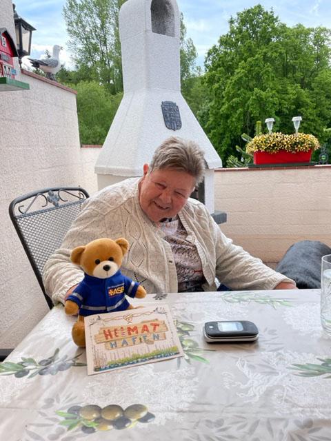 Nachtrag II: Ich habe Helga zwei Tage nach der Fahrt das kleine Bärchen aus dem Wünschewagen gebracht. Sie war immer noch ganz aus dem Häuschen. „Es ist so, als ob meine Flügel immer noch ganz weit ausgebreitet sind. Ich habe das Gefühl, dass ich fliegen kann.“ Guten Flug, liebe Helga!