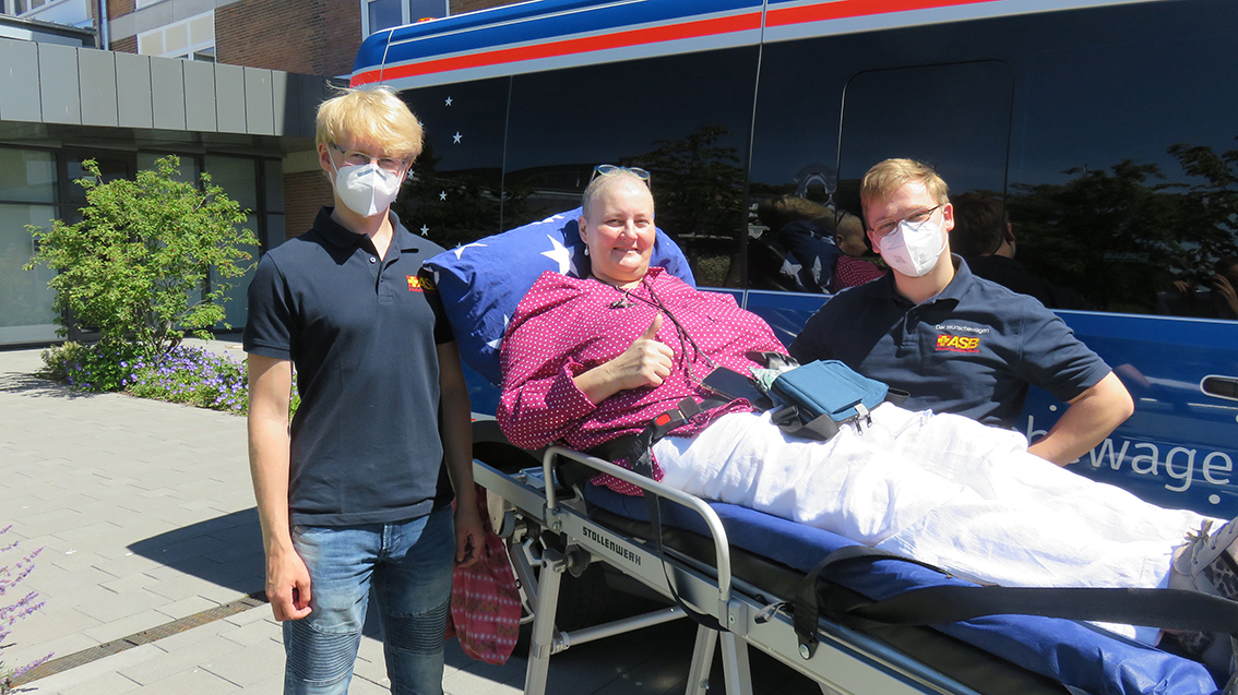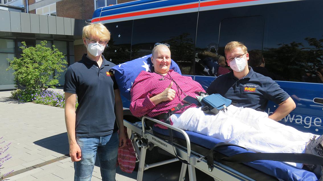 Nach vielen schönen Fotos vor dieser besonderen Kulisse wurde die Heimreise angetreten. Mit einem erschöpften, aber sichtlich zufriedenem Lächeln sind Frau K. und ihre Begleitpersonen wieder zu Hause auf dem eigenen Hof angekommen und wurden vom Hund freudig in Empfang genommen. Zum Abschied bedankte sich die Frau, dass der ASB ihr „diesen Herzenswunsch erfüllt“ hat. „Das haben wir sehr gerne gemacht!“, lautete die einhellige Antwort.