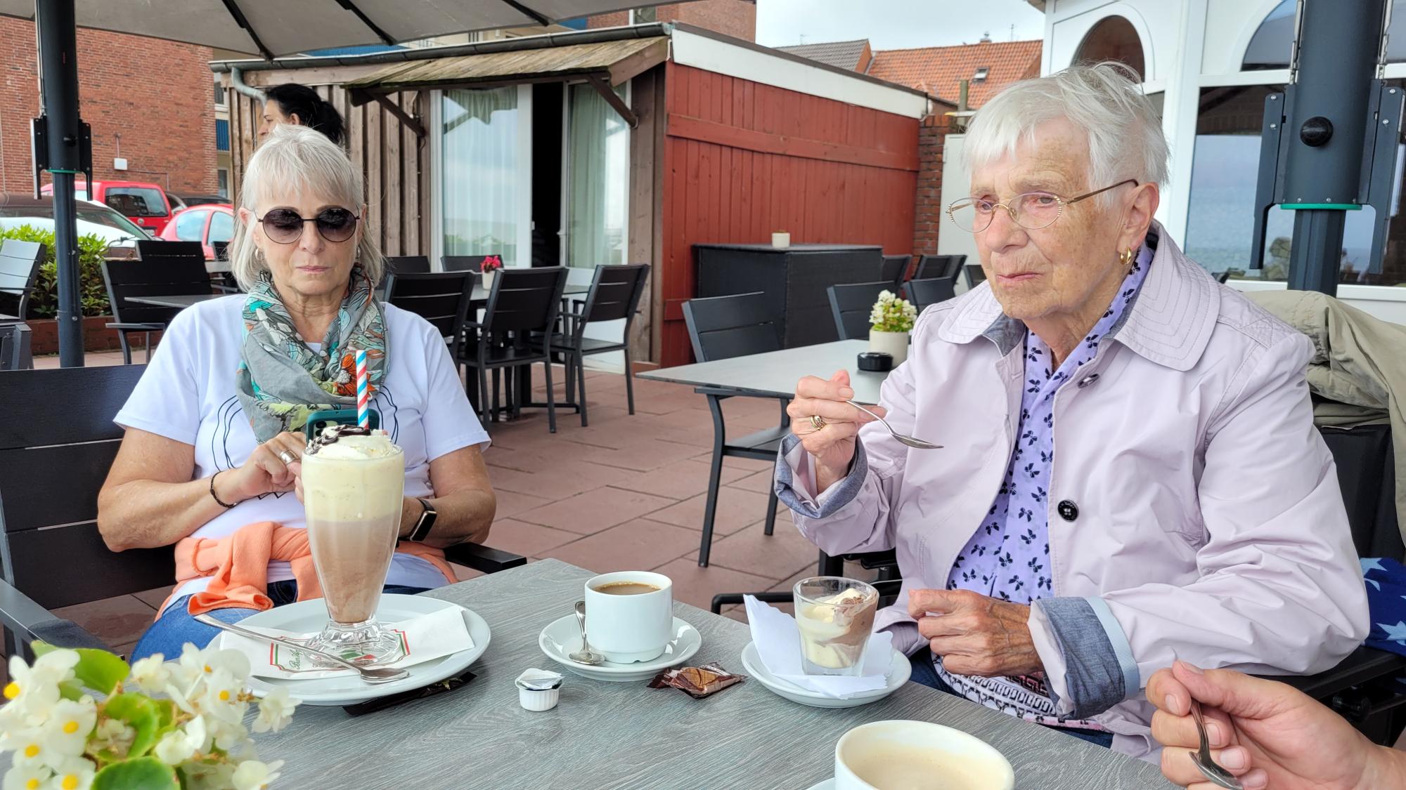 Zum Abschluss gab es noch einen großen Kaffee und einen schönen Eisbecher direkt am Meer. „Hier hat man wirklich den perfekten Ausblick aufs Wasser“, stellte Annabel fest. Der Ausblick war sogar so perfekt, dass wir beinahe die Zeit vergessen und unsere Fähre zurück aufs Festland verpasst hätten. Aber wer hätte es uns verübeln können – Föhr gibt es schließlich kein zweites Mal.