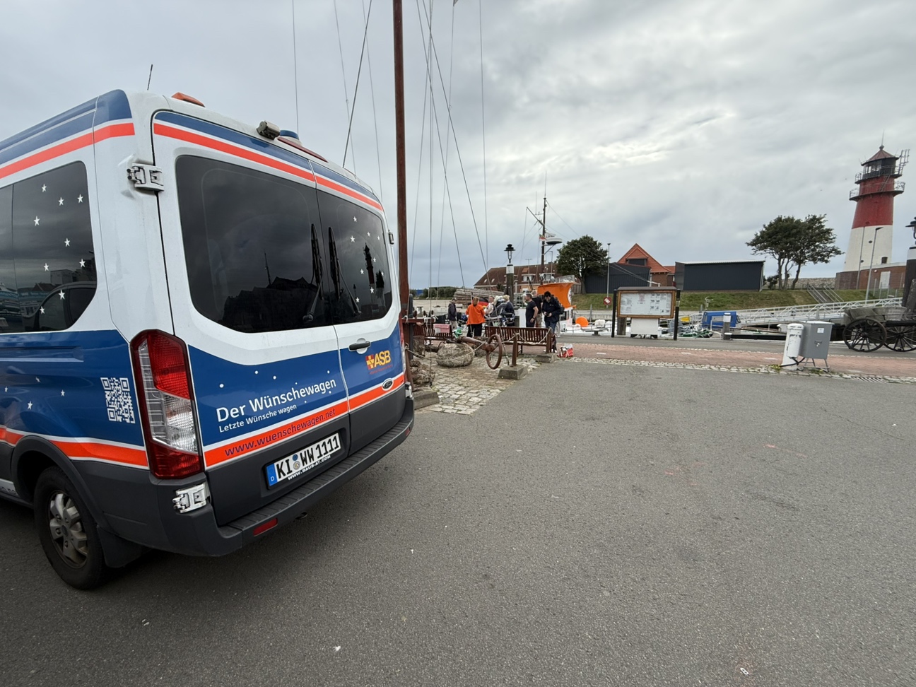An einem sonnigen Sonntag Ende August machten sich unsere Wunscherfüller:innen Vera und Thomas mit dem Wünschewagen aus Elmshorn auf den Weg, um einen ganz besonderen Wunsch zu erfüllen: Noch einmal die Nordseeluft in Büsum spüren.