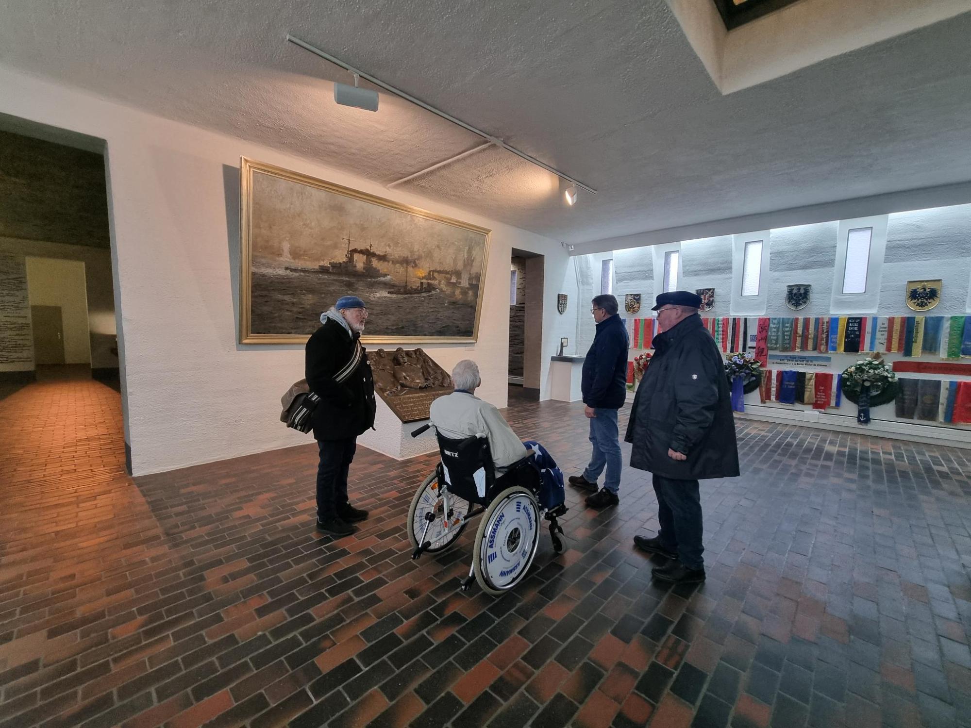 Geplant war ein Rundgang durch das U-Boot, den Turm, die Museumshalle und die Gedenkhalle. Leider war der Fahrstuhl zur unterirdischen Gedenkhalle aufgrund von Personalmangel außer Betrieb. Doch wie durch ein kleines Wunder war zufällig ein dienstfreier Mitarbeiter vor Ort, der sich spontan bereit erklärte, den Fahrstuhl in Betrieb zu nehmen und uns zudem eine Führung durch alle Bereiche zu geben.