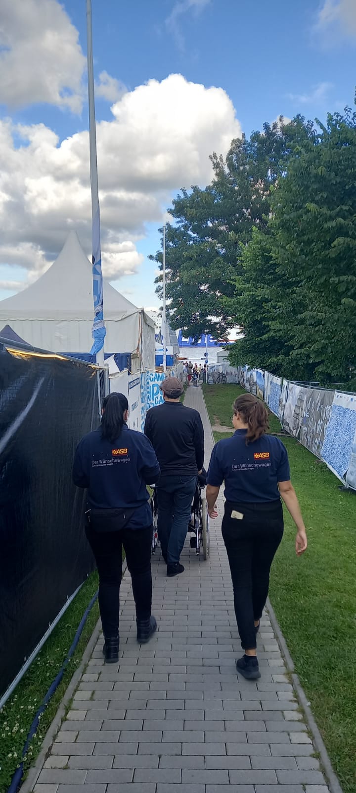 Im Januar dieses Jahres dann die erschütternde Diagnose – Hirntumor. Das sollte unsere Fahrgästin und ihre Kinder jedoch nicht davon abhalten, dieses Konzert nun mit Hilfe des Wünschewagens doch noch zu besuchen. Bevor es losging, durfte für die Kielerin ein Fischbrötchen an der Kiellinie inmitten des Getümmels der Kieler Woche nicht fehlen.