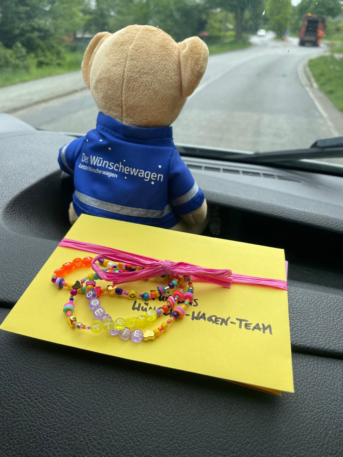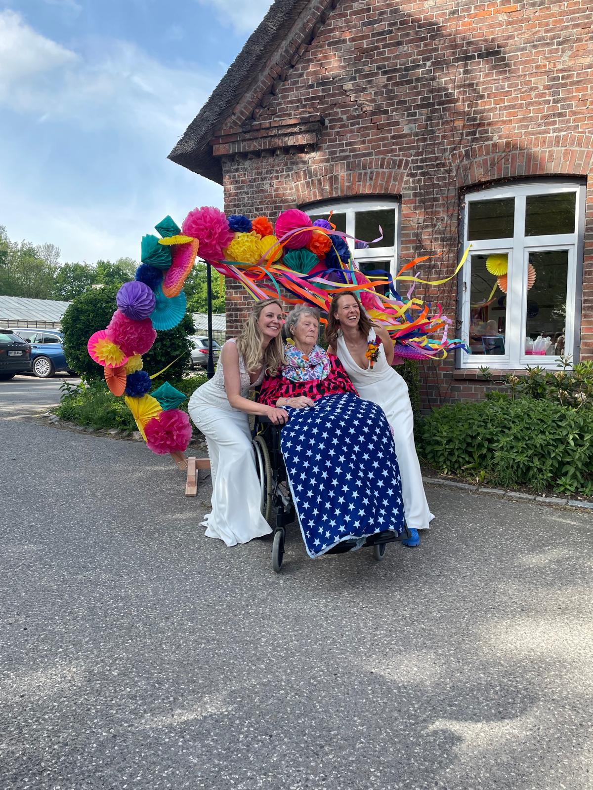 Nur ein kleiner Moment, dann werden Nicole, die den Wünschewagen fährt und Lara als Beifahrerin (die Namensgleichheit zu Braut und Enkelin ist zufällig) Ohrenzeuginnen, als wir hinten im Wagen beginnen zu singen. „Marmor, Stein und Eisen bricht, aber unsere Liebe nicht“, wie passend, für den heutigen Anlass.