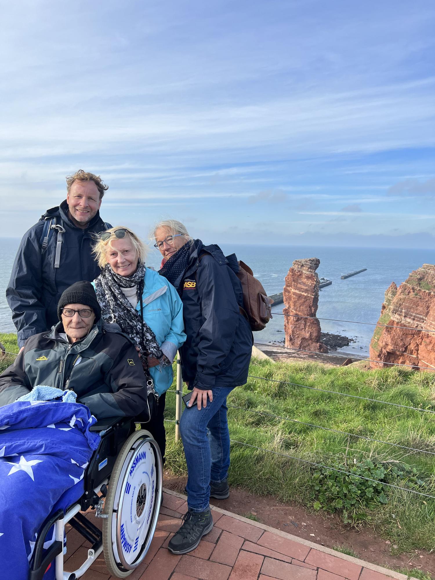 Einmal noch auf Deutschlands einziger Hochseeinsel, nämlich der Insel Helgoland, ein Bismarckbrötchen essen. Ein Wunsch von Ekkhard H. und seiner Schwester Elke C., dem unsere Wunscherfüller:in Susanne Meinert und Lars Timm gerne nachgekommen sind. Als Herr H. noch ein Schuljunge war, konnte er Helgoland erstmalig besuchen. Den Aufenthalt hat er in sehr, sehr schöner Erinnerung behalten.