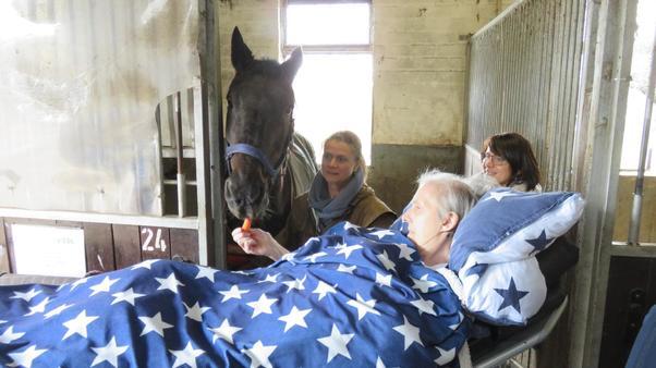 Am 9. März ging die Fahrt mit dem Wünschewagen zusammen mit ihrem Ehemann zum Reitstall nach Mielkendorf bei Kiel. Dort warteten schon Freunde und Bekannte, für die es selbstverständlich war, Frau K. diesen Wunsch mit zu erfüllen.