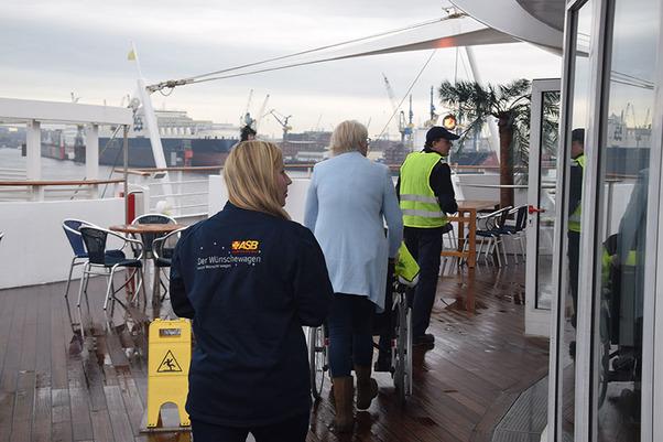 Unser Fahrgast Reimer arbeitete viele Jahre lang als Lkw-Fahrer und belieferte im Hafen Kreuzfahrtschiffe. Seine Familie wollte ihm den Wunsch erfüllen, den Hamburger Hafen noch einmal zu besuchen.