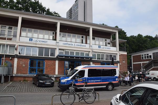 Mit Reimer und seiner Stieftochter an Bord machten wir uns auf den Weg zum Cruise Terminal Altona. Dort angekommen, warteten schon seine vier Schwestern und ein Freund auf den Wünschewagen.