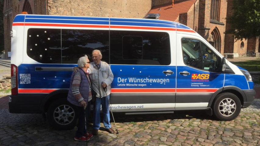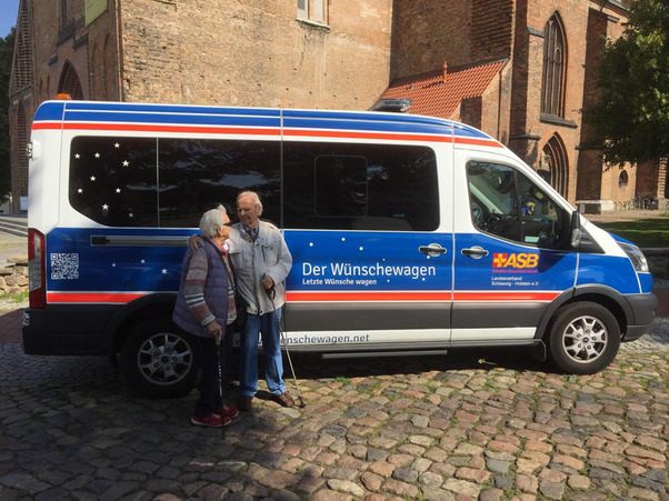 Am Mittwoch ging es nun endlich los. Unsere Wunscherfüller Manuela Schauland und Helmut Hollstein holten das Ehepaar morgens zu Hause in Ellerau ab, wo der schwerkranke 87-Jährige und seine Frau schon aufgeregt auf den Wünschewagen warteten. Auf der Karte hatten sie die gewünschte Nebenstrecke markiert, viele Erinnerungen und Erlebnisse wurden ausgetauscht, bis der Zielort erreicht wurde.