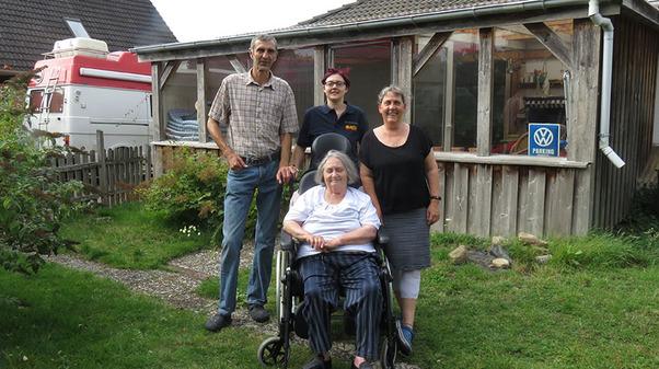 So ging die Fahrt mit dem Wünschewagen zum Haus der Tochter nach Brokstedt, wo gegrillt werden sollte. Vier Generationen fröhlich an einem Tisch vereint - das war für unseren Fahrgast Frau S. eine Riesenfreude, und immer wieder betonte sie: "Ich kann gar nicht beschreiben, wie glücklich ich bin. Ich könnte weinen, weinen vor Glück."