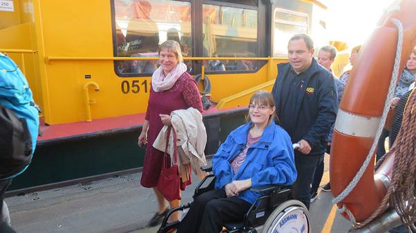 Auf der Fahrt nach Wedel, wo wir unseren Fahrgast Frau F. von der Palliativstation abholten, haben wir kurz in Appen angehalten, um ihre Mutter mitzunehmen, die sie begleiten sollte. Dann ging die Fahrt weiter zu den Hamburger Landungsbrücken, um von dort mit dem Schiff zum Musical zu kommen.