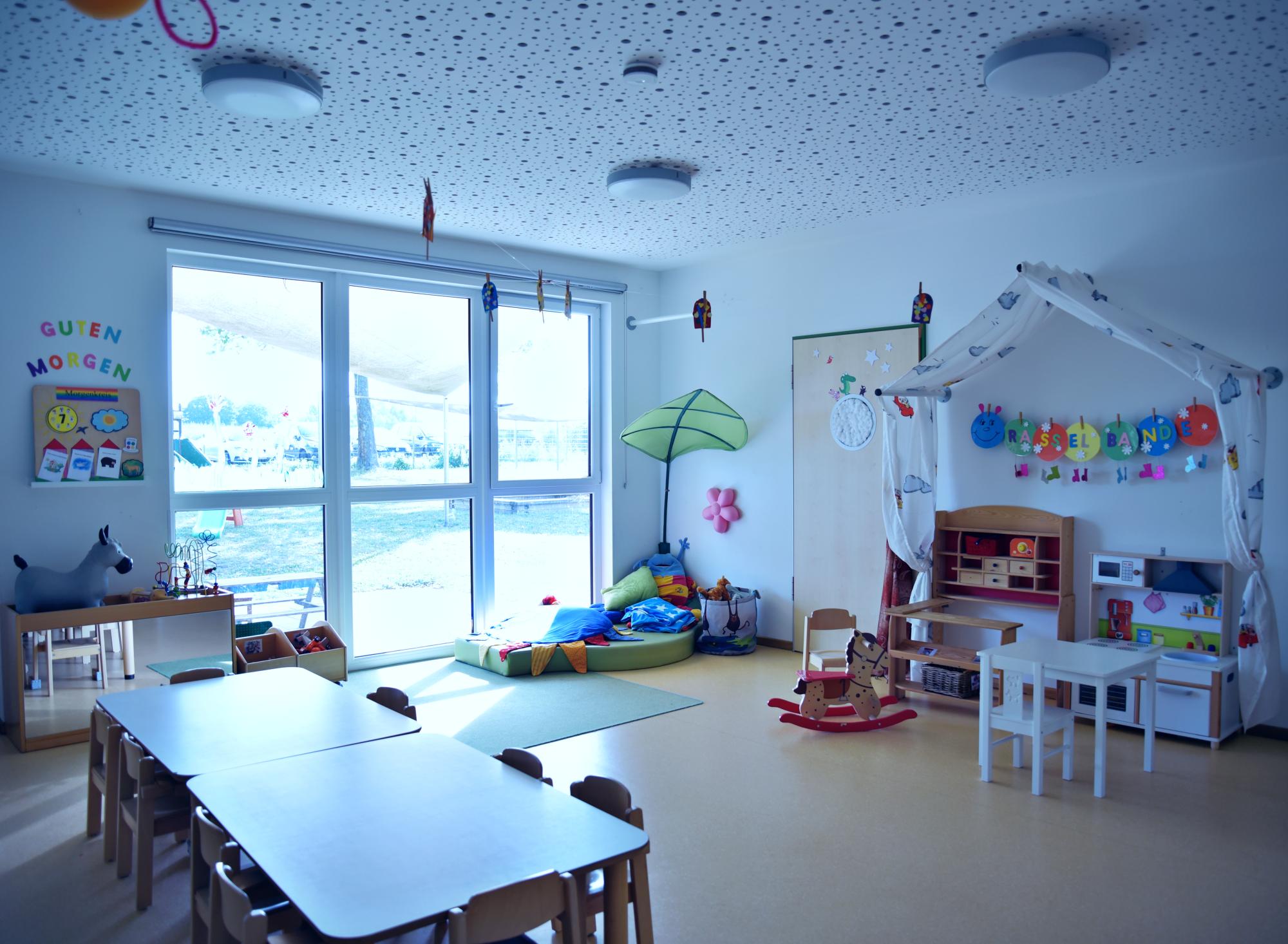 - zwei Kindergärten (3-6 Jahre): 40 Plätze
